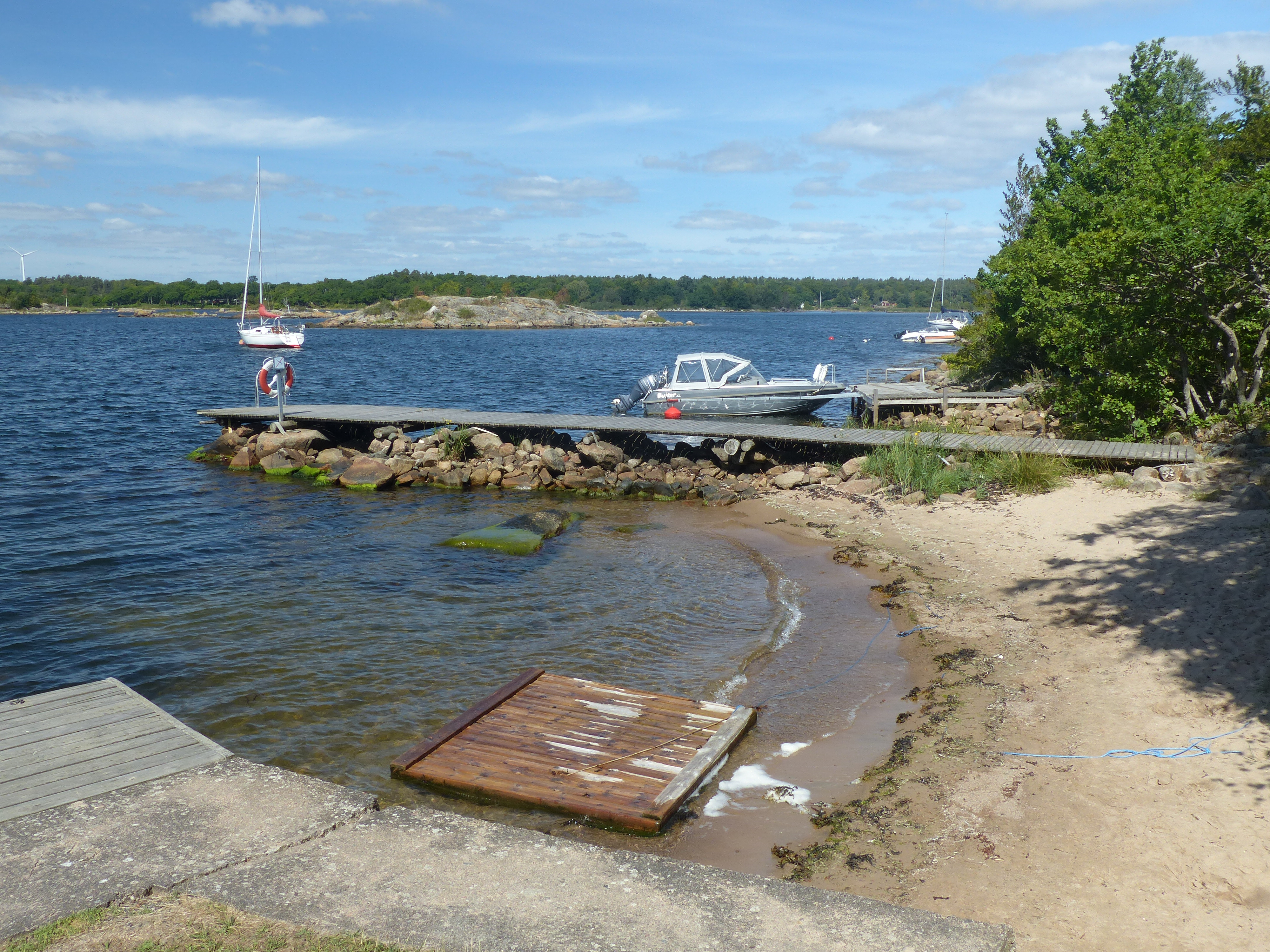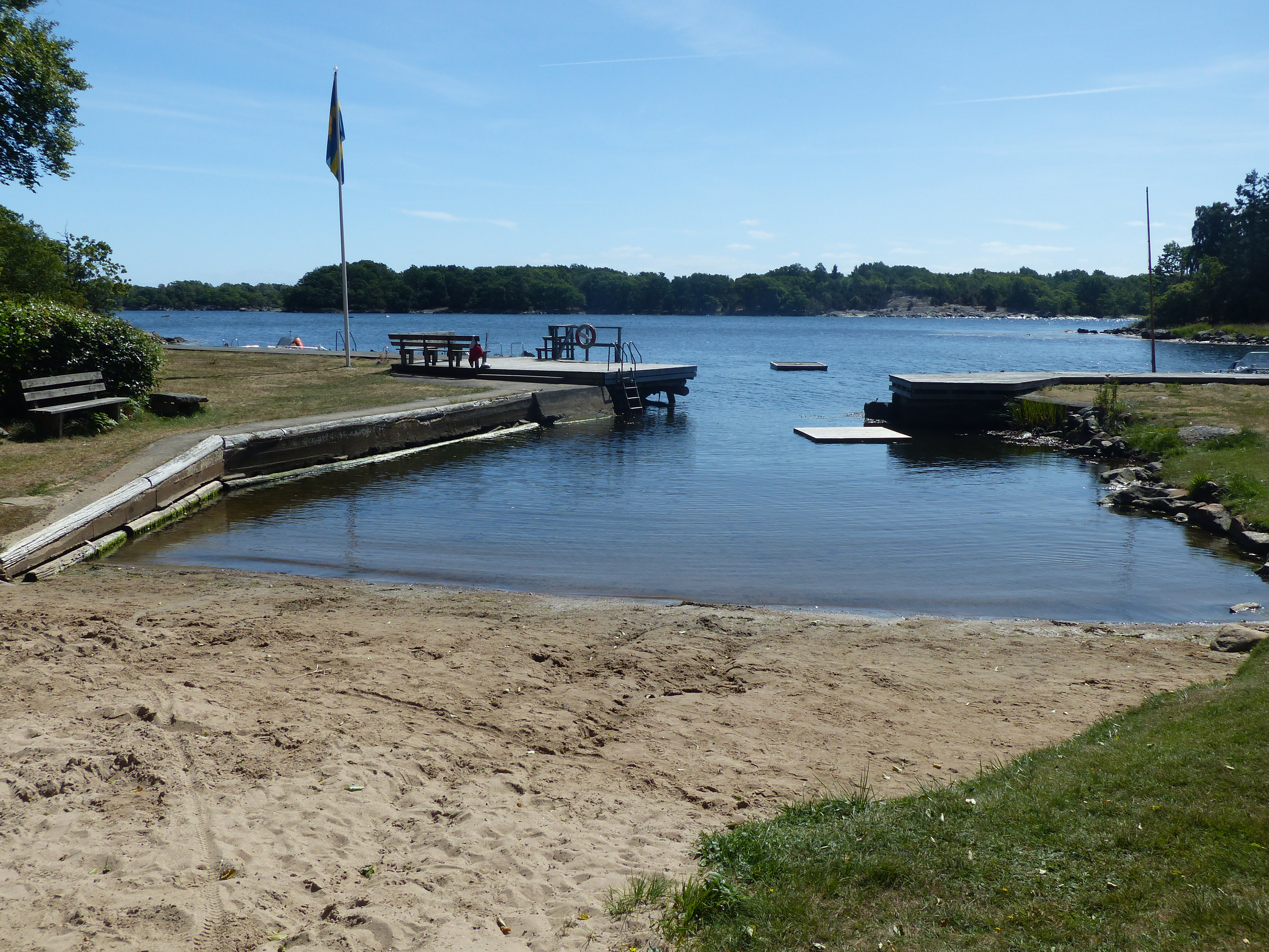 Hundbad rekommenderas endast i ’Franssonska viken’, vilket är änden på Aspholmsvägen.