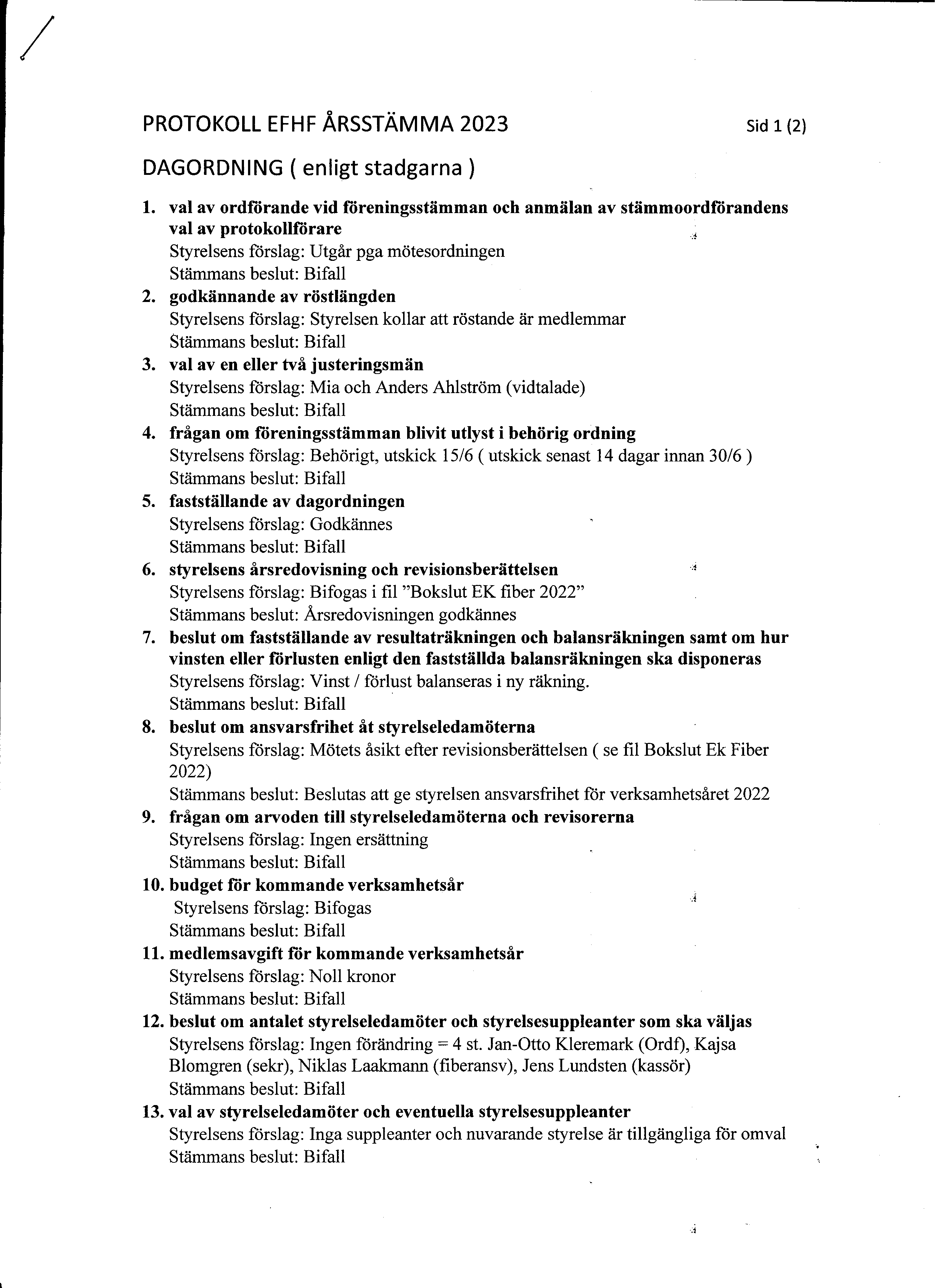 önskar styrelsen EFHF